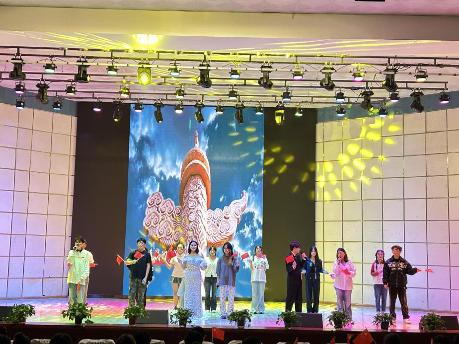 整场晚会精心设计了“青春启航·活力开场”“文化交融·民族风情”“青春思考·使命担当”“梦想与未来·燃情收尾”四个篇章,节目形式多样,内涵丰富。从活力四射的开场舞《白日梦想家》、充满民族风情的《傣寨雀语》《石榴花开》,到引人深思的朗诵与反诈小品《校园诈骗》,再到深情演绎的《如愿》《我爱你中国》,充分展现了旅管学子多才多艺、积极向上的精神风貌和对家国情怀、职业使命的深刻理解。