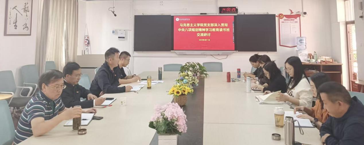 2025年4月11日,马克思主义学院党支部在艺术楼207开展深入贯彻中央八项规定精神学习教育读书班交流研讨,深入学习领会中央八项规定及其实施细则精神等文件。学校党委书记王翔到会指导,会议由党支部书记李兵主持。