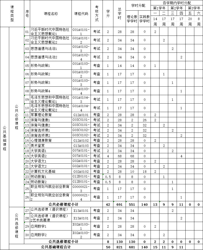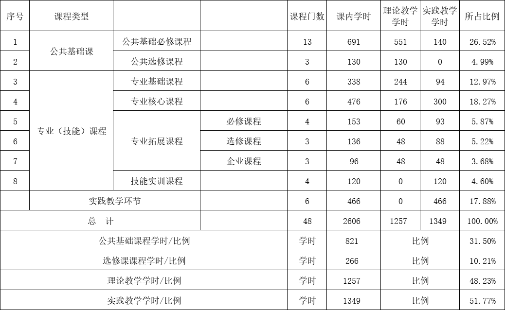 本专业课程主要包括公共基础课和专业课程,基本情况如下: