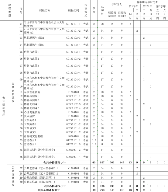 本专业课程主要包括公共基础课和专业课程,基本情况如下: