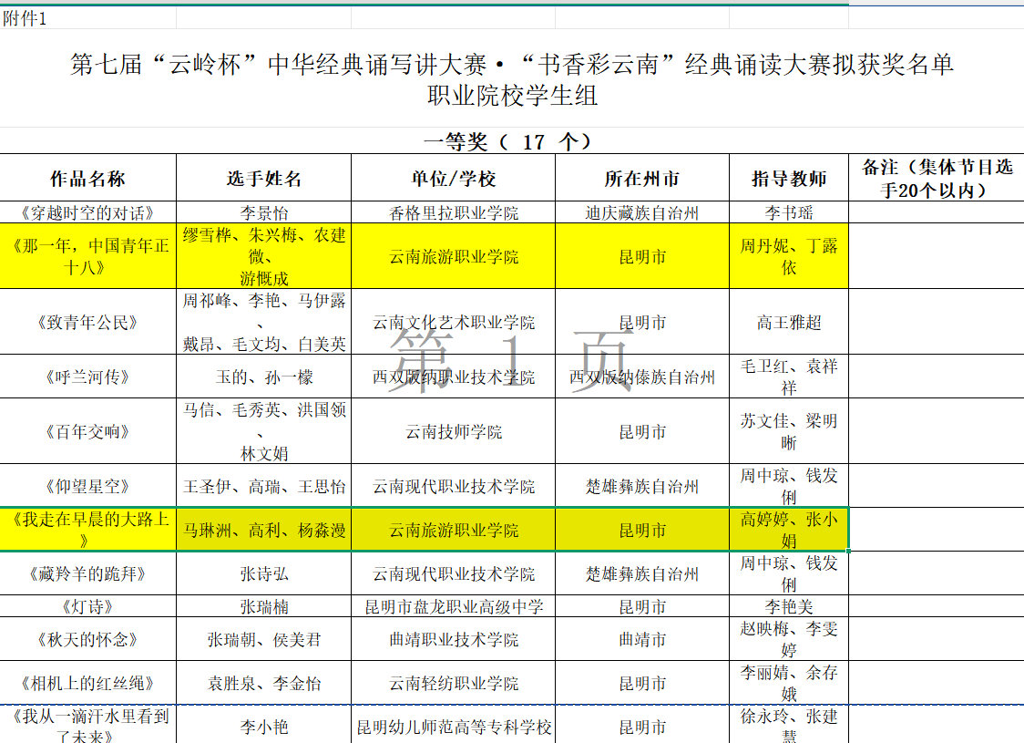 近日,根据《教育部办公厅关于举办第七届中华经典诵写讲大赛的通知》(教语用厅函〔2025〕2号)要求,由云南省语言文字工作委员会、云南省教育厅主办,云南广播电视台、云南财经大学、昆明信息港承办,云南出版集团协办的第七届“云岭杯”中华经典诵写讲大赛省级评审结果揭晓,我院师生作品表现突出,共计斩获省赛一等奖两项,二等奖一项。
