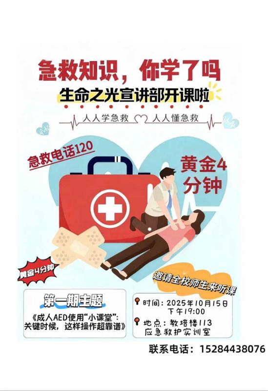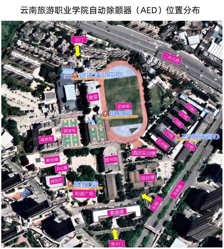 我校应急救护实训基地于校园核心公共区域配备4台自动体外除颤器(AED),每台设备旁均设有醒目标识。此举不仅标志着我校实践教学条件的飞跃,更构建了从“技能学习”到“现场施救”的完整闭环,彰显了我校对师生及游客生命安全的坚定守护与专业保障。