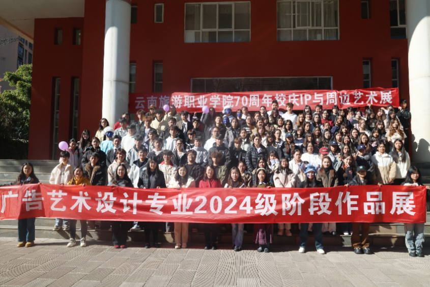 12月9日,“云南旅游职业学院70周年校庆IP与周边艺术展暨2024级广告艺术设计专业阶段成果展”开幕。本次活动集中展示了学院为迎接建校70周年所设计的系列视觉标识与周边产品,同时呈现了广告艺术设计专业24级学生的阶段学习成果。展览吸引了众多学校师生到场参观。